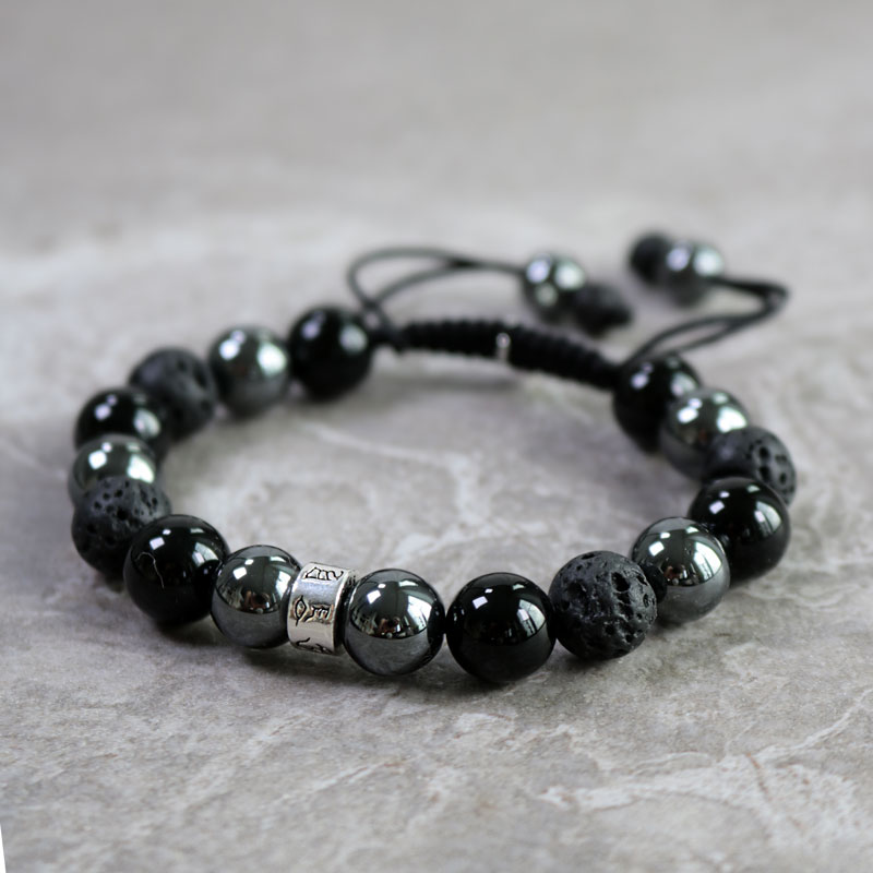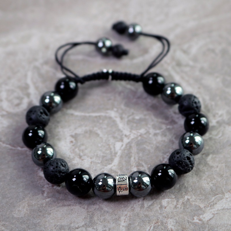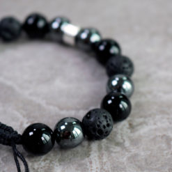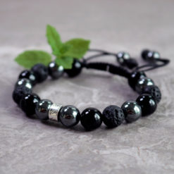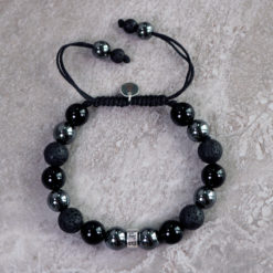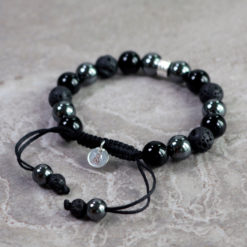 Strong and grounded bracelet is a bracelet that strengthens self-control, stimulates wise decision-making and gives the wearer courage, peace and trust. It is a carefully hand knotted bracelet with lava, onyx and hematite stones together with details of Sterling Silver 925 that can be adjusted in size. The minimum size is 16 mm.