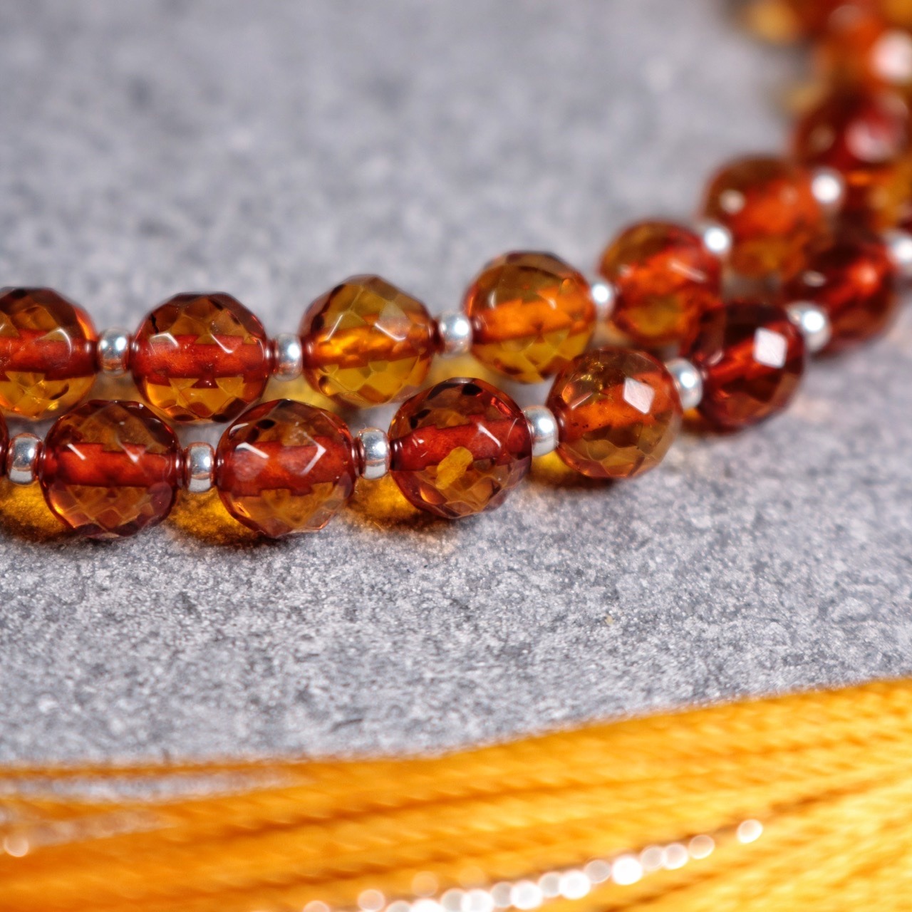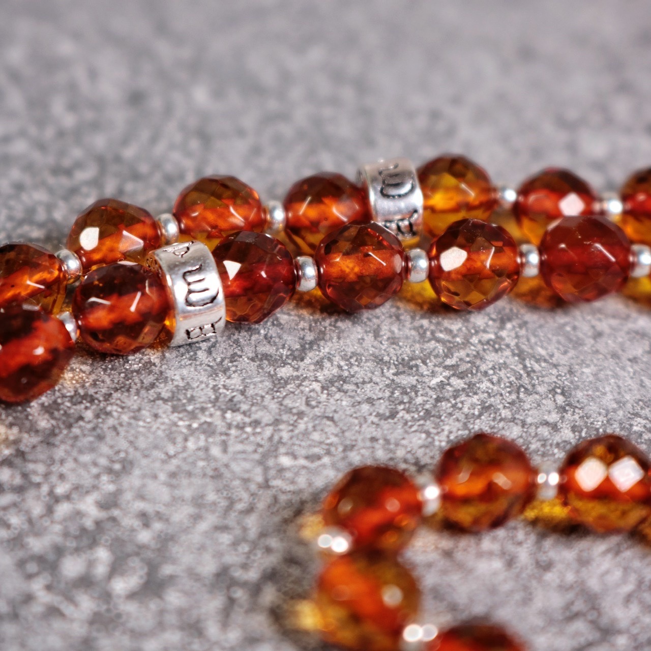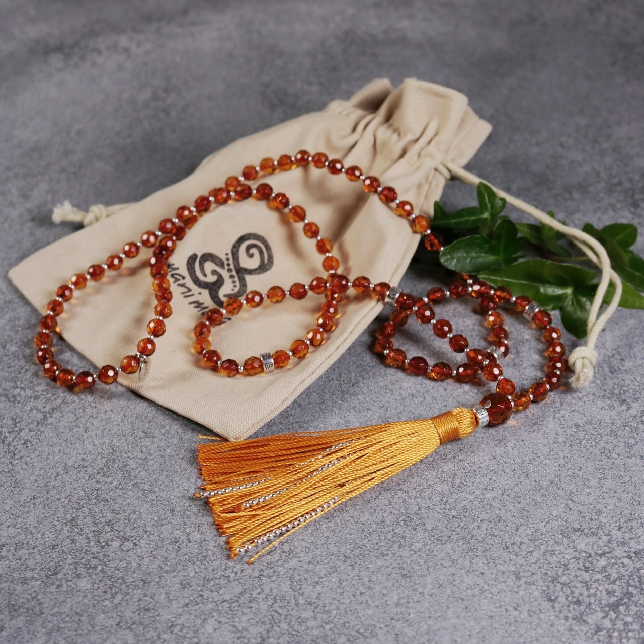 Power of amber mala is an exclusive mala that absorbs negative vibrations and helps the body heal itself. It attracts love, friends, money, success and helps you to be humble and feel respect for nature. Power of amber mala is a zen style mala with 108 6 mm faceted amber beads, 1 guru bead and details of sterling silver 925.