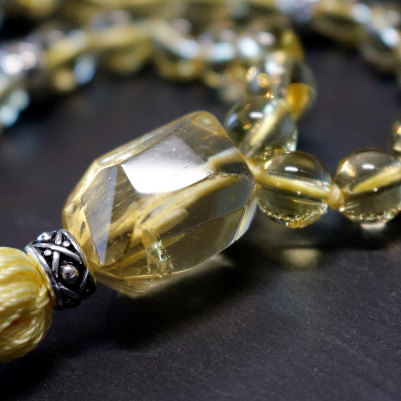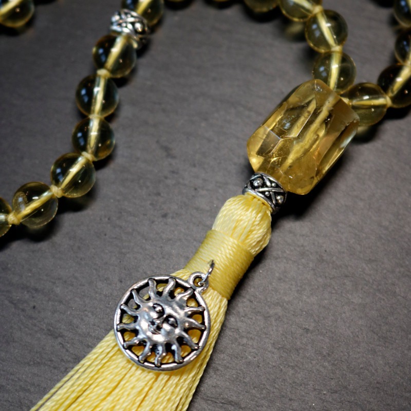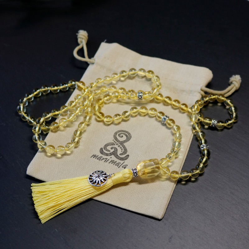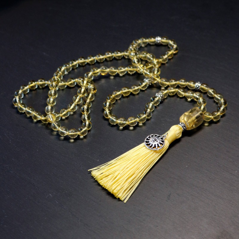 Sunlight mala helps us see the brightness of life, transforming the negative into something positive and improving our self-esteem and self-esteem. Sunlight mala is a carefully hand knotted mala in zen style consisting of 108 rocks of citrine and final guru bead combined with antique silver plated details (999,9/1000 silver).